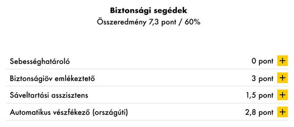 A biztonsági elektronikákkal a Stelvio a középmezőnyt képviseli. A 60%-os elért eredményt a sebességhatárolónak köszönheti, amire kereken nulla pontot kapott. Az értékelés oka, hogy a rendszer beállítása túl bonyolult, így nem felel meg az Euro NCAP követelményeinek. A biztonsági öv bekötésére figyelmeztető rendszer jól működik, az összes ülésnél jelez. A sávelhagyás-figyelő szintén jól szuperált, akárcsak a vészfékező rendszer. Az AEB (Autonomous Emergency Brake) városi, és országúti helyzetekben is bizonyított. A lassú autókra és a hirtelen felbukkanó gyalogosokra is jól reagált, minden esetben elkerülte a balesetet. Egyszóval a rendszer megfelelő védelmet nyújt, de a sebességhatároló miatt itt összesen 7,3 pontot szedett össze az Alfa Romeo Stelvio.