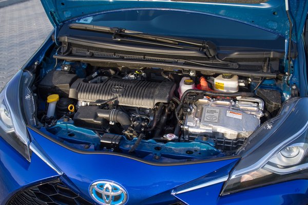 A Toyota hibridhajtása egyértelműen a legkiforrottabb a piacon. A Yarisba is ugyanaz a rendszer – a neve itt Full Hybrid e-CVT – kerül, mint a Priusba, annyi eltéréssel, hogy a benzinmotor kisebb, 1,5 literes. Ez nem az a motor, amelyet a Yaris új, benzines változataiban használnak, hanem egy régebbi blokk átdolgozott vezérlésű változata. Ez is Atkinson-ciklus szerint működik, és a méretéhez képest nem valami erős: a csúcsteljesítménye 74 lóerő, a maximális nyomatéka pedig 111 Nm. A teljes rendszer teljesítménye a gyári adat szerint kerek 100 lóerő, bár a hibrid rendszer működése miatt nehéz megítélni, hogy minden ló megvan-e.