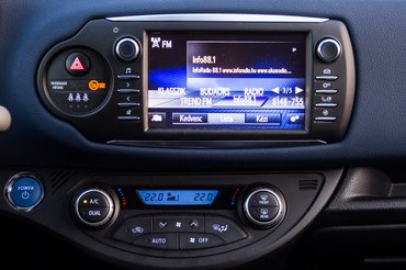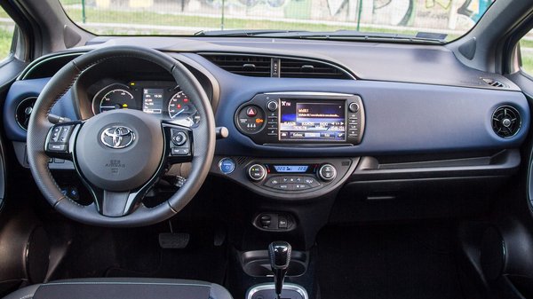 A tesztautó belsejében a kifejezetten igényes és kisautósan egyszerű megoldások zavarba ejtő egyvelegével találkoztam. A karosszéria színére rímelő kék betétek például kellemesen puha tapintásúak, de körülöttük a sötétszürke felületek a legegyszerűbb, kőkemény műanyagból készültek. Ugyanígy igényes részlet az ülések és a kézifékkar kék varrása, a csomagtér burkolatában viszont a létező legolcsóbb hatású burkolatokat alkalmazták. Mindez persze nem csak a Yarisra jellemző: a legtöbb jól felszerelt kisautóra jellemző ugyanez a kettősség. A kis Toyota egyébként egész jól összerakott autó benyomását kelti, egyedül a bal oldali ajtóból jött halk nyiszogás néha. Ugyanakkor rossz illesztésekkel, eldolgozatlan részletekkel, sorjás vagy öntéshibás alkatrészekkel egyáltalán nem találkoztam, ami üdítő kivétel a mai kisautók között.