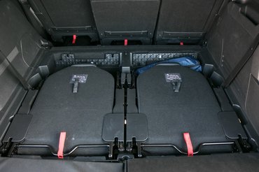 A hétülésesség azért nem lehet fő profil egy 4,6 méteres kocsitól. A második sor három ülése különálló, ettől mindegyik keskeny egy felnőttnek. A bőrös változat ülései pedig akármilyen szépek, de keményebb tömésűek, és az apró székek kényelmét finoman szólva nem dobja fel. A leghátsó ülések pedig egészen aprócskák, és a középső sor gigantikus lábteréből fel kell áldozni valamennyit akkor is, ha 10 év körüli gyerekeket akarunk leghátulra beültetni. Felnőtt végképp csak rövid távokra fér be oda. Leghátulra levegő is alig jut, de legalább a középső sornak van saját levegőbefúvója.