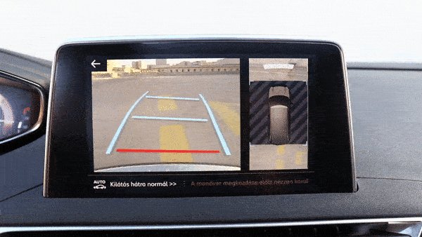 Sokkal nehezebb viszont elfogadni azt, hogy az 5008-as varázslatai hiába viselik ugyanazt a nevet, valójában csak majdnem olyanok, mint bármilyen más kocsiban. Mondjuk a 360 fokos felülnézetet ígérő parkolókamera-rendszer (170 ezer Ft, parkolóautomatikával együtt) tulajdonképpen csak az első és a hátsó kamera képéből menti el a kocsi két oldala között mutatott részeket, ahogy haladunk, úgy tűnik el a szürke zóna. A valódi(bb) 360 fokos képhez ugyanis a két külső tükör alá is kéne egy-egy kamera – nincs ezzel semmi gáz, használható, csak például egy Nissanban ugyanezen a néven jobbat kapni.