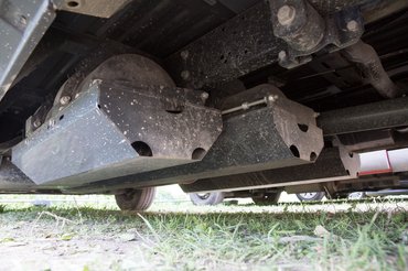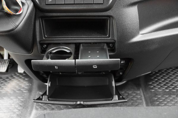 A bőségesen páncélozott tartályokat alul viseli, és még a hátsó tengely mögé is jutott, így a pótkerék a raktérbe költözött. Amikor megláttam a két lelógó puttonyt, aggódtam, de a rögös hajógyári utakon és a fesztiváli hepehupákon se sikerült odacsapni semmihez. Ezek a tartályok sajnos jó nehezek, így az azonos méretű dízel verzióhoz képest jó 300 kg-mal kevesebbet tudunk szállítani, jelen esetben 1345 kg helyett 1029 kg-ot.