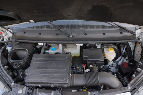 Ha matricázás nem volna, akkor is sejthető, hogy nem a szokásos furgonnal van dolgunk. Bár a kocsin belül nem utal semmi a CNG-re, de álló helyzetben annyira halkan működik a motor, hogy még egy benzines kocsiba átülve is fájt a motorzaj. Odalépve neki, elég jól megindul, mivel csak 136 ló, de 350 Nm a nyomaték. Ekkor kicsit versenyautósan mélyen dörmög a motor, ami egész meglepő a megszokott dízelkerregéshez képest. A motor, illetve az elődje már 2011-ben tudta az Euro 6-ot, mindenféle szűrők, adalékok és vajákolás nélkül.