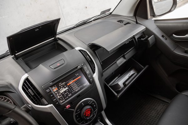 Bár nem kedvencem a bőrülés, de tagadhatatlan, hogy sokkal könnyebb tisztán tartani, mint a szövetet, cserébe nyáron sokszor kezdtem sercegni, amikor némi állás után beültem. Amúgy egész elfogadható az oldaltartása és hosszabb utak után se kellett kiskanállal kiszedni. Azon ritka alkalmakkor, amikor hátul is utaztak, nem volt panasz az ottani kényelemre, a duplakabinosban már a hátsó sor se az a klasszikus pad. Az egyik legmelegebb nyár volt az idei, szóval a klímának nagy hasznát vettem. Ugyan a kezelőfelület egyzónás, de egyes konkurensekkel ellentétben azért hátra is megy a hűvösből. Érdekesség, hogy míg a legtöbb kocsiban 22-24 fokra beállítva érzem jól magam, itt 28 fokig kellett feltekernem, hogy ne kezdjek el deresedni a kocsiban. Csikós szerint ez tipikus japán autós jelenség.