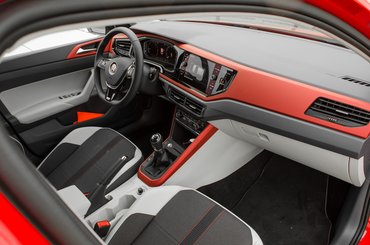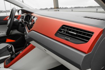 Hangulatra nálam tíz/tíz volt a bemutatós tesztautó. Elképesztő, mennyit tud dobni a létélményen egy színezett műszerfal, pedig ehhez még csak fel sem kell találni semmi újat, elég kilépni a németes komfortzónából. Olyan unortodox húzásokkal, mint a műszerfalról az ajtókárpitra is átlógó színezés. Nyolcféle színnel lehet feldobni a belteret az új Polóban a rikító pirostól a szürkéig – lehet fényes, matt, amit akarsz. Ezzel a piros-fekete színpárral önmagában úgy berendezték a tesztautót, hogy még azok a betonkemény, minimalista pohártartók se tudnak rontani az ember közérzetén. A Polo most belehúzott a lazaságba, és tessék kapaszkodni: nem csak a műszerfal, de a komplett ajtóborítás is színezhető. Másrészt viszont várhatóan úgy sem trükközi majd a többség. A fapadosabb Tredline-ban sok nyoma nincs a hóbortnak. A sötét- és halványszürke párossal se fájdalmas a Polo, de azért abban létezni egész más életminőség.