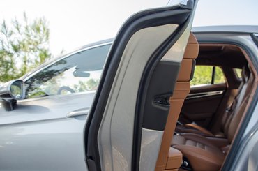 A benti munka is lekövette külsőt: a B oszlopig nincs újdonság. A Sport Turismónál a 4+1 ülés felosztás lesz az alap, a négyüléses, két külön álló és állítható hátsó üléses kivitel itt opcionális. Az a plusz egy ülés területileg inkább plusz fél, egy farpofányi domborulat a kardánalagút fölött, keményre bélelve. A brutálisan nagy klímapanel mögött kicsit klausztrofób érzés lehet itt ülni, lábtér nem jár hozzá alanyi jogon, azt úgy kell lopni két oldalról, és az sem áll neki jól, hogy fenék alatt bevág az övcsat. Szükségszéknek megteszi, de ezért barbárság beáldozni ezt a gyönyörű elválasztó teret, amit a Panamera tud négy üléssel. Ötszemélyes Porschéra vágyók, a ti autótok továbbra is a Cayenne.