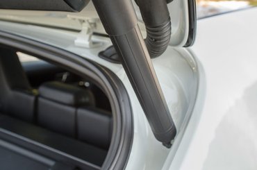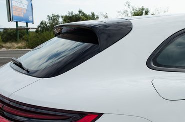 Alap üzemmódokban 170 km/h-ig meg se moccan, marad a helyén a spoiler, azaz hét fokban dől a far felé. 170 fölött aztán egyszer csak beindul a kis motor, és bedönti plusz egy fokra az orr felé. A Sport és Sport Plus üzemmódokban ugyanezt megteszi már 90 km/óránál, ha valamiért nem csak pályán kéne az extra leszorítás. Igazából van még egy – mivel mégis csak egy családi autóról van szó –általánosabb haszna: nyitott tetőablaknál automatikusan 26 fokos szögbe rakja magát, mert ettől csökken a szélzaj.