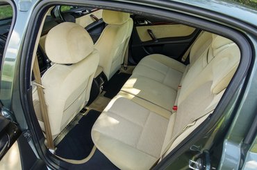 A vezetőülésen szintén érezni a sokezer ki és beszállást. Az ülőlap és a háttámla oldalmerevsége aligha fogja meg a vezető testét egy-egy élesebb kanyarban. Ennek ellenére mindenhol érezni a szivacstömést és sehol a merevítővasakat. A kárpitozás a legkényesebb bézs színű plüss, de sem kiégés, sem makacs folt nem rondítja az összképet. A vezetőülés lapjáról azért lőttem külön fotót, hogy lássák, ott már elindult a foszlás, de a szivacsra ragasztott huzat még mindenhol összefüggő. Hátul legfeljebb néhányszor ülhettek eddig, minden újszerű.