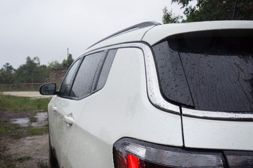 És pont a dizájn miatt csalódás is az új Compass, meg nem is. Igazán akkor tudnék érte lelkesedni, ha nem létezne a Renegade, vagyis a Fiat 500 X alapjaira épített mini-SUV. Ott már-már brillíroztak a rajzolók, az a forma kedves, ugyanakkor markáns, rengeteg vicces utalással (kedencem a marmonkanna-motívum a lámpatestben), de komolyan vehetően. Viszont mellette az új Compass tulajdonképpen csak biztonsági játékos, látszik ugyan, hogy egy a vérvonal, mégsem dobta el tőle senki az agyát. Ha gonosz akarnék lenni, azt mondanám, hogy a Grand Cherokeeban találtak egy szelepet, kihúzták, majd gyorsan visszadugták, és amennyit leeresztett, az lett a Compass. Van hetes osztatú hűtőrács, ami a divatnak megfelelően összeér a fényszóróval, a kerékjáratok ívei is stimmelnek, de ennyi, hangyányi kreativitás csupán a C-oszlopban lefutó króm-betétben fedezhető fel.