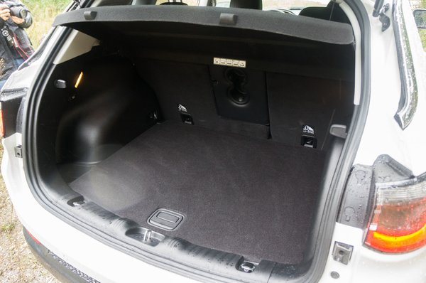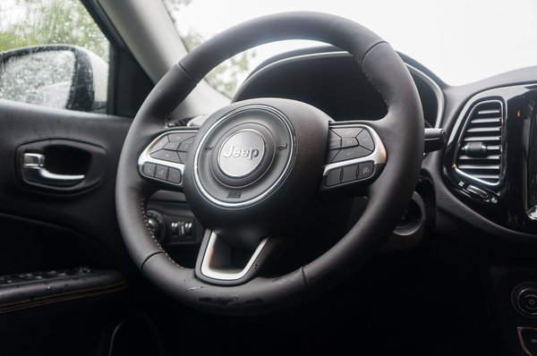 Az első generációs Jeep Compass beltere annyira elképesztően ocsmány műanyagból készült, hogy egy vérbeli terepjárós rámondta volna, hogy slaggal tisztítható. És itt jött a csavar: nem volt az, csak simán baromi igénytelenre gyártották. Ezzel szemben az új Compass tervezői bravúrosan nem túl szép, ám kifejezetten kellemes tapintású műszerfalat építettek be: távolról tényleg a kilencvenes évek japán autóit idézi, ellenben megfogni jó. Nem meglepő módon a Jeepben kényelmesen elfértem magam mögött, és még 435 liternyi csomagtartó is marad. Az ülésekről nehéz ítélkezni így alig 20, váltva levezetett, ki-be ugrálós kilométer után, de alapvetően nem voltak rosszak, ellenben az ülésfűtést hiányoltam. Érdekes módon a fűtés vezérelhető a saját gombjairól és az érintőképernyőről is, viszont az ülésfűtést a menüben dugták el. És amikor reggel, hidegben az ember beugrik, jajj, de hideg, gyorsan nyomjuk be, na, akkor nagyon hiányzik egy pár kapcsoló.