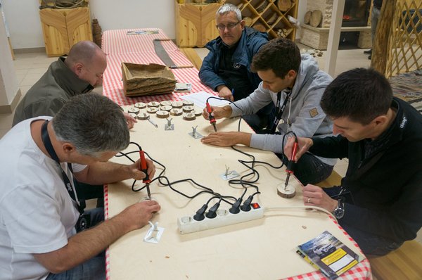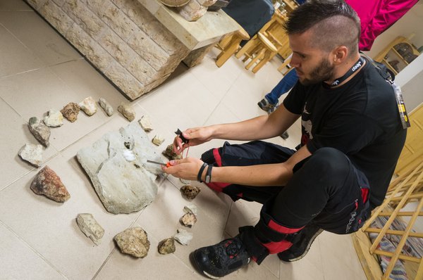 Tüzet gyújtani lehet öngyújtóval, mint a gyengék, és lehet magnéziummal, mint a férfiak. Nyilván az utóbbit választom, úgy huszadjára meg is gyullad a vattacsomó a kőlapon. A fajfenntartó dicsőségből levont, hogy ezt egy kályha mellett, meleg, otthonos szobában hoztuk össze, de ha kint a zuhéban kellett volna pattintgatnom a szikrát, még mindig ott állnék. Még meghatároztuk, hogy melyik növény ehető, és melyik mérgező, kerestünk kristályokat, végül pirográfiával zártuk a napot: fa korongokba égettünk bele Jeep logókat forrasztópákával. Szóval lenyomtuk egy Jeep tulajdonos átlagos napját.