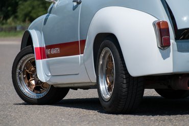Az a kicsi 695SS se két nap alatt állt össze Viktornak, de tényleg fantasztikusan sikerült, hosszú ideje már csak az élvezetet szállítja. És ha már egyszer összejött az 500-as alappal, miért ne próbálná meg a 600-as vitriolos kivitelét is? - gondolta, és belecsapott, immár rendszerben gondolkodva, mert egy 1000TC vagdalkozással nem áll össze, ide koncepció kell. Eredeti, '68-as bódé, a motor 1050-esre felhúzva, az egy Abarth-féle blokk. A csontra szétszedett és kilakatolt karosszériát eleve a szélesítésekhez és a sallangok felszereléséhez igazítva készítette el a mester, a fényezés pedig az egyik ismert Abarth-sémát követi a kábé tucatnyi közül. Mivel utcai használatú kocsi volt a végcél, a motorházfedelet nem támasztották ki vízszintesre, csak épp egy keveset a kellő hűtés érdekében. Hiszen arra a plusz leszorítóerőre csak 160 km/h fölött lenne szükség.
