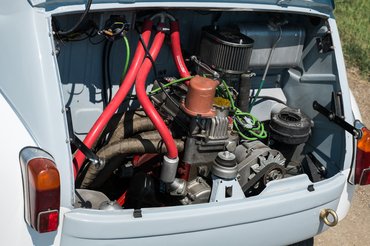 A már 903 köbcentis (honnan is volt az a motor, lássuk csak, ja, az Autobianchi A112, később a Fiat 127 blokkja pont az volt, 100GL kóddal) blokkot Abarthék 982 köbcentire és 100-110 lóerő közé húzták fel (7500-8000-es fordulatszám egy nyomórudas, három helyen csapágyazott motorból, ember!), de ehhez a teljesítményhez már alaposan módosítani kellett a futóművet is – innen a sok szélesítgetés. Később jött a még durvább 130 lóerős TCR, de arról nem sikerült biztos információt szerezni, hogy a kétvezértengelyes, felülvezérelt, 982 köbcentis Bialbero-motort is beletették volna a magas, 600-as kaszniba – olyat csak az egyedi, lapos, puskagolyószerű Abarth-bódéval látni szerteszéjjel a neten.