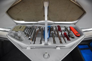 A belseje is legalább olyan ráérős, mint maga a modellciklus, a vezető felé fordított cockpit is jóval szellősebb, mint a mai stílus; a gombokért szinte nyújtózkodni kell. A kormány karimája már akkor is jó szafaládés volt, de a küllők elképesztően filigránok, és ha átnézünk a kormányon, azt a furcsa jelenséget látjuk, hogy 1984-ben még mennyire nagyon tükröződött a műszerfal plexije. Ha pedig rázoomolunk a részletekre, észrevesszük, hogy akkor a BMW még németül kommunikált. Ami tök romantikus, abszolút támogatom is, amíg csak a Bremslichtig jutok, és kissé elbizonytalanodok, amikor eljutok odáig, hogy Kennzeichl. Persze, persze, ha megmondod, mi az, majd a homlokomra csapok, hogy ja, hát ezt tudtam, csak addig vagyok gondban, míg meg nem mondod.