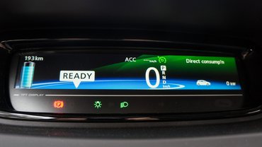 A Zoe egyénisége a teljesen LCD műszeregységen tűnik ki. Fordulatszámmérő helyett gazdaságosságmérőt kapunk, ami a gyorsítópedál állásának megfelelően jelzi, mennyire vezetünk zölden. A kijelző grafikája ma már inkább minimalista, mint szemet gyönyörködtető, de szerencsére könnyen olvasható.