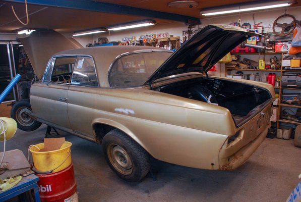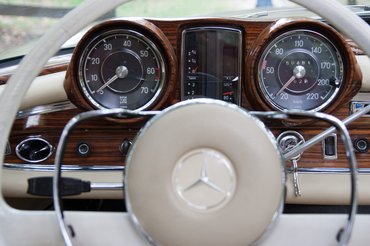 Mint réges-régi Mercedes-mániás illető, számtalan állólámpás Mercedes birtoklása után nála is eljött a perc, amikor úgy érezte – itt az idő, hogy elhagyja a kispályát. Rámosolygott a szerencse: az amerikai eBay-n talált egy bronzszínű, 1966-os 250 SE-t, egész olcsón. Érdemes tudni, hogy a korai és gyenge, 1962-ben bemutatott 220 SE-hez képest ebben már a jóval erősebb kettőfeles motor volt (a W111 kupé mind befecskendezős motorral készült, egyik se volt karburátoros), de a karosszéria még épp a régi szériából származik, tehát kupakszerű, szakzsargonban csirkeitatósnak nevezett dísztárcsái vannak, nem pedig a későbbi sorozat lapos pléhdarabjai, á la állólámpás Mercedes. A legjobb széria, még a régi, szép elemekkel, de már a kicsit fickósabb motorral, ráadásul az amerikai származás ellenére is európai kivitelben, amitől sokkal harmonikusabb.