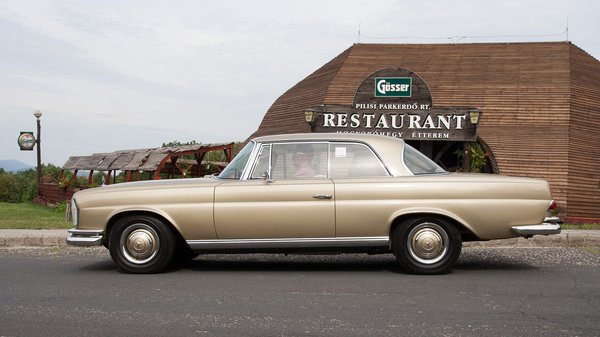 Hogy mi ez az autó, amiről beszélek? A magyar mercis köznyelvben Fecske-kupénak mondott, a hatvanas évek elejétől a hetvenesek nyitásáig gyártott, fix tetős, kétajtós Mercedes. Mindenki látja, hogy maga a név butaság, mert ez nem fecske, hiszen nincs függőleges vezérsík a két hátsó sárvédőjén, amiről az igazi Fecske-széria a nevét kapta. De műszakilag hajszálpontosan ugyanaz a kocsi. Csak míg a Fecske-limuzin anakronisztikus volt és az elemei kaotikusak, ez az autó épp az ellenkezője: a hatvanas évek legszebb és legemlékezetesebb kupékarosszériáját hordja. Még az is lehet, hogy a valaha gyártott legszebbet.