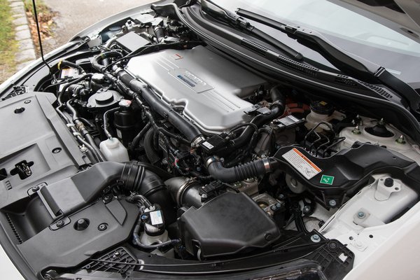 Roppantul büszkék is rá a Hondánál, hogy a villanymotor-inverter-gázellátó rendszer-tüzelőanyagcella mind el is fért a motortérben. Ez a sok cuccot lényegében egyetlen blokkban egymás tetejére pakolták, az egész kábé akkora helyet foglal, mint a Honda 3,5 literes, V6-os benzinmotorja.