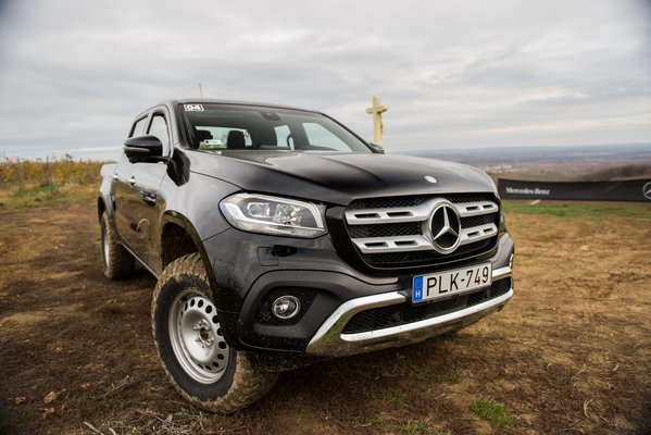 Egyértelmű, hogy strapabíróra kell megcsinálni, hiszen a Mercedes akkora márka, hogy sokan, akik mondjuk a világ keményebb szegleteiben zöldségesmercis taxizással kezdték, simán lehet, hogy mostanra felküzdve magukat csak márkahűségből is X osztályt vesznek. És őket nem szabad átverni valami kevéssé golyóálló technikával, hiszen a Youtube-ra Mauritániából is fel lehet tölteni a videót egy széthullott autóról. Ebben sokáig azt mondtam, egy nagyon csendesre megcsinált átlagos mai pickup. Úgyhogy a végén az evangelizációs hajlamú instruktorok elvittek még egy körre a szőlőhegyre meg az erdőbe. Már úgy, hogy én vezettem. És egyszer se mondták, hogy lassabban, inkább, hogy küldjed, küldjed! Szakadt földutakon, meg vízmosás-jellegű helyeken azért elég sok az 50-60, de az X flottul bírta. Elképesztő az is, mit tud egy terepgumi: hátsó hajtással mentünk fel sáros, vizes faleveles hegyoldalakban. A kipörgésgátlót ki lehet lőni, de a kormányszöget figyeli – egyenesben dobálja neked a sarat, de kanyarban elveszi a gázt, és csak akkor nem tenné, ha kiirtanád az ABS-modult.