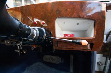 A kedvencem azonban mégsem ez, hanem a kurbli nélkül működő, karos ablakemelő berendezés. Egy nyomás, lent van az üveg, egy másik rövid húzás, feljött – a kar közben nem írt le 70 foknál nagyobb ívet. A partitrükköt úgy oldották meg, hogy rugóval előfeszítették a szerkezetet, tehát lefelé irányban felhúzzuk a szerkezetet, felfelé meg éppen lejár az órarugó, kompenzálva a gravitáció hatását. Hasonló üvegmozgatás egyébként több, korabeli angol luxuskocsiban (például Rollsokban) is volt, s gyanítom, hogy nem is autógyári, hanem karosszériaműhelyi szabadalom lehetett. Egyébként a jobb autókban a tekerős ablak is így működött – abban biztos vagyok, hogy például a hatvanas évek Mercedeseinél nagyon hasonló mechanika tette lehetővé, hogy csak hármat kelljen csavarni a kurblin.