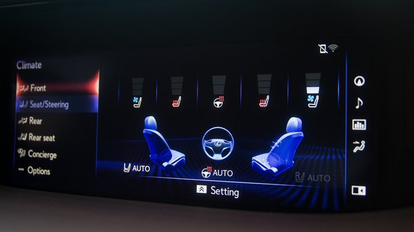 Dicséretes, hogy a klímaszabályzók analóg gombot kaptak, amikor már egy C3-as Citroën is a érintőképernyős fűtésszabályozással szívat, meg kell becsülni az ilyet, ugyanezt megtehették volna az ülésfűtés - szellőztetés kapcsolóival is, mert most egy almenü almenüjéből kell elővenni. Márpedig ezek olyan funkciók, amik egy hideg reggelen a rögtönnél kicsit hamarabb kellenek. A Lexus belsőépítészeit évente négyszer küldik szemvizsgálatra, gyakrabban, mint az orvosokat, így a színösszeállítások ízlésesek, de azért most már az ergonómiával foglalkozó szakival is kezdhetnének valamit.