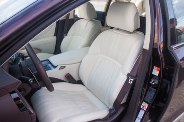 Megvan minden, ami a kategóriában jár, masszírozós mind a négy ülés, 28 irányba állíthatók, a bal hátsó pedig az executive, vagyis az első utasülést előredöntve végteleníthető a lábtér. Annyi a funkció, hogy egy komplett klaviatúrát kiadnának a kapcsolók, ezért a kategóriában jellemző módon egy tabletet bőröztek a középkonzolba. A kényelemben nincs hiba, viszont a hátsó fejtér erősen véleményes. Én 182 centivel inkább az átlagot képviselem, de aki ennél magasabb, az bele fog érni.