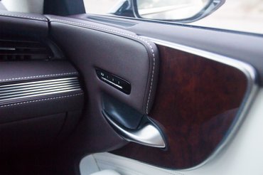 Hajlamos vagyok elhinni, hogy a Takumi kézművesség tényleg olyan, mint a Lexus belseje. Végtelenül ízléses, finom, de gyökeresen más, mint az európai versenytársaké. A kedvencem a lebegő oldalsó kartámasz, aminek elrejtették az alsó rögzítését. Sokkal emberközelibb az egész belső így, hogy nem két hatalmas LCD panel köré épül. Lehet rendelni, fa-, alu-, üveg-, és origami betétet is: utóbbi szintén kézzel készül, apró szövetdarabok tömegét hajtogatják lamellaként egymásra. A Kiriko üveg- (2,1 millió a felára), a fém-, és a fabetét is kézzel készül, utóbbi talán a legkevésbé szép. Elhiszem, hogy valódi fa, igényes is, egyszerűen csak úgy néz ki, mint egy csúnya fautánzat.