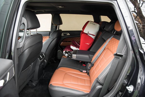 A hátsó üléseken is rengeteg a hely, kíváncsi lettem volna, mit tud a hétüléses harmadik sora, mert a csomagtartó brutális: alaphelyzetben 1051 liter, támladöntéssel 23 liter híján két köbméter. A hétülésesben is marad még a harmadik sor mögött 240 liter. Szóval brutális, a hátsó ülést is fűthetjük, hely is van, de ez is terepjárósa van elrontva: magas a padló. Ez pedig önmagában nem volt hiba, csak adottság, a hiba nálam inkább az, hogy saccra lenne még 7-8 centi, hogy magasabb legyen az ülőlap, amivel egy felnőttnek is kényelmes ott a terpeszkedés.
