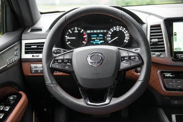 Ami még nem kéne, a 20 colos felnik. Mióta a Mercedes X osztályt egyszerre láttam a 20-as parádésfelniken és a 17-es varacskos vasakon ballonos gumival, mindenre azt raknék. A Rexton G4-hez ugyan már a proletár Style felszereltségben is alu a felni, és azt a 17-est nem láttam, de nekem biztos nem kéne ez a Sputtering fantázianevű 20-as, még 140 ezer forintos felárért sem. A G4 finoman fut még azzal is, de úgy képzelem, egy 17-es, vagy 18-as acél sem optikailag, sem rugózásilag nem tenne neki rosszat.