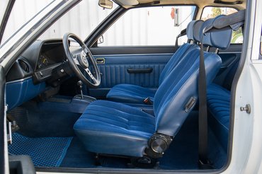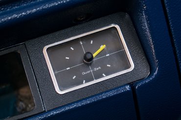Döbbenten teszem D-be a váltó előválasztó karját a kék utastérben. Elképesztően jó és eredeti állapotú: ezt nem kicserélték, ezt kékre gyártották, és nemcsak a kárpitokat, hanem az ajtópaneleket, a műszerfal alját is. A kárpit csodálatosan újszerű bársonyos szövet, kopásnyom nincs rajta, meg is kérdeztem Norbit, hogyan sikerült ilyen szépre felújíttatnia, ekkor árulta el, hogy milyen állapotban kapta meg. Az üléseken volt egy huzat, azon egy réteg szőrmehuzat, majd a biztonság kedvéért az egészen egy trikó. Úgyhogy a restaurálás művelete mindössze ezek eltávolításából állt.