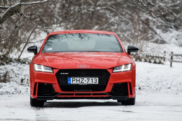 A szerpentinen átérve 23 liter körül mutat a fogyasztásjelző, de Klausnak kisebb baja is nagyobb annál, mint hogy ezzel foglalkozzon. Egyébként tizenöt körül simán eljár, de amúgy sem nagyon hatja meg a fogyasztás, soha nem kellett számolgatnia. Néha talán csak az zavarja, hogy az 55 literes tankkal kicsi a hatótáv. Aki majmot vesz, legyen pénze banánra is – neki történetesen van. És arra is van, hogy nyugodt szívvel játszadozzon a fater 28,5 millió forintnyi eurójával – éppen ennyibe került a szépen felextrázott TT RS.