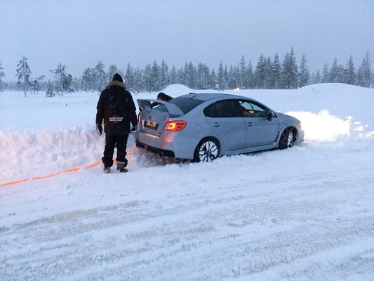 Hogy igazán érezzük, mennyire semmik vagyunk ehhez az autóhoz, egy helyi ralis, Jani Ylipahkalas vitt egy taxikört az erre fenntartott dobálós pályán. Egy pontosan olyan WRX STI-vel, mint amivel mi bohóckodtunk. Kis szöges gumi, gyári futómű. Sajnos a videó, amit a Jani mellett csináltam, egy óvatlan formatálás áldozata lett, de azt hiszem, bemondásra is elhiszi mindenki, hogy félelmetes tempót lehet kocsizni egy ilyen autóval. Azt meg a videó sem igazán képes átadni, mekkora pofonokat képes zokszó nélkül elviselni a futómű.
