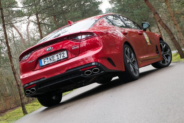 Fentiek különösen igazak a 3,3-as, V6-os biturbóval szerelt, 370 lóerős, összkerékhajtásos csúcsverzióra, amelyet a mortefontaine-i utolsó Év Autója-tesztelésen megkaparintottam. Ezen a kocsin már megvolt a három legfrissebb, felárért kérhető újítás is: a) a 4WD-hez is rendelhető, hátsó sperr; b) a nagy gázon plusz 6 dB-t pumpáló, kissé türhőbb hangú kipufogórendszer; c) a valóban teljes kézi üzemmódot biztosító (tehát manuálban se fel, se le nem kapcsoló), nyolcgangos, Kia-fejlesztésű DSG-s váltó. Mind zamatos áru, kellett már.