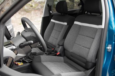 A tér nem lett nagyobb odabent, de nekem eddig valahogy nem volt meg, hogy ennyire jó a térérzet egy C4 Cactus-ben. Talán az előretolt szélvédő teszi, talán hogy a fentről nyitható kesztyűtartó alatti űr miatt utasoldalon annyi a hely, hogy ölbe férne egy reggelizőasztal. Széltében sincs nyomorgás, bár lehet, hogy itt nem a középkonzol rekeszein kellett volna megspórolni a helyet. Az ajtókba tett zsebek zseniálisak, hátul két másfél literes üveg befér állítva, ami a műfajban felér egy körrekorddal a Nordschleifén, de érthetetlen, középre miért nem jutott több hely. Legalább azt a szánalmas kis teraszt nyújtották volna meg a szellőzőrostélyok alatt akkorára, hogy egy telefon ne essen ki belőle.
