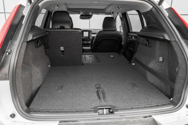 Kívülről nem is sejteni, hogy rendes csomagtér bújik meg a tömpe dobozka farában. Tisztességes, mély üreg, annyira mély, hogy jól jön a szokásos Volvo-funkció – az egy mozdulattal, a stratégiailag elhelyezett bőröndfogantyúval, félbehajtva felemelhető, és függőlegesen rögzíthető csomagtérpadló. Ebben a helyzetben kapunk egy falat, amely meggátolja, hogy a kisebb cekkerek előrecsússzanak az üreg mélyére – amikor hazaérünk, nem kell a sáros lökhárítóra hasalva, derékig a csomagtartóba hajolva, darabonként összeszedegetnünk az almákat, Kinder-tojásokat, egészségügyi betéteket és összelapított Túró Rudikat. Ráadásul – igaz, az is feláras – de a csomagtérajtó is motoros működtetésű ebben az autóban. Mi több, még a hátsó ülések támlája is gombnyomással dönthető, igen, a csomagtartó faláról, két gombbal.