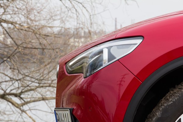 Mentségére szóljon, a kelepelést menéssé alakítja, pedig ez a gyengébbik, 180 lovas 2,2-es dízel (az erősebb 210 lóerő). Könnyedén mozgatja az 1,6 tonnás kasznit, nem akar elfogyni, közben vegyesben kicsivel nyolc liter fölött fogyaszt. Országúton vagy autópályán már nem is hallani a motorhangot, az inkább lassabb menetben, városban zavaró. Közben a nyolcsebességes ZF-automata simán és gyorsan kapcsolgat, egyedül akkor csúszik be néhány rosszul időzített visszaváltás, amikor kis üzemi fékkel, de inkább a motorfékre hagyatkozva gurulunk közelebb a piros lámpánál álló sorhoz. Ilyenkor a hirtelen felerősödő motorfék miatt ránt egyet rajtunk. Fülek nincsenek a kormány mögött, de azokat én amúgy is tájidegennek érzem egy SUV-ban.