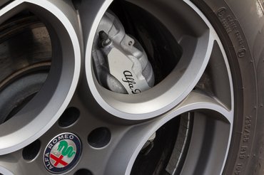 Elöl ott a Giulia-szerű, lágyan ívelő orr, közepén a hangsúlyos Alfa-maszk, a lökhárító alját sem egyszerűsítették túl, oda is jutott egy-két csúcs. Szinte semmi első túlnyúlás, hátul jókora, de formás fenék. A C-oszlop viszont annyira széles, hogy kamera és radar nélkül elveszettnek éreznénk magunkat nemcsak parkolás, de egyszerű sávváltás közben is. A hátsó lökhárító két szélén jókora krómos kipufogókivezetés – mindkettőben igazi, bár jóval vékonyabb cső. A kaszni domborításain-homorításain, itt-ott élein szépen táncol a fény, érdemes elmerülni a részletekben is. Ha csak a felni hatalmas lyukai mögül kukucskáló féknyeregre pillantunk, az is gyönyörű. Rajta az autóipar valaha volt talán legszebb tipográfiája, az írott betűs Alfa Romeo-felirat.