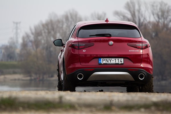 Megszokást igényelt a futómű is. Viszonylag kemény, rossz úton pattogós, a kormányzása pedig nagyon közvetlen, az első kilométereken emiatt idegesnek is tűnt a mozgása az M0-n, de ezzel is gyorsan meg lehet barátkozni, nem hiba, nem negatívum, csak sajátosság. Mármint a kormányzás, mert ugye a futómű az a hazai utakhoz bőven lehetne puhább. A Stelvio amúgy alapból hátsókerekes, akárcsak a Giulia, de nálunk az összkerekes, Q4-változat volt – igaz, száraz úton, normál használat mellett ebből semmit sem érezni. Legfeljebb laza talajon, sárban vagy hóban lehet némi haszna, de csak ezért, ismerve a magyarországi időjárási viszonyokat, nem vennék négykerékhajtásút.