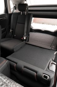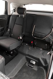 A Jazz mellől a hasonló ívású, zsugorított egyterűek szinte kihaltak a piacon, nincs már Nissan Note, se Citroën C3 Picasso, a Renault Twingo meg már ezer éve más iskolát követ. Szóval a Jazz azoknak szól, akik Jazzt akarnak venni, kis alapterületű, de nagyon variálható autót. A trükkje ugyanaz, mint már az első kiadásnál*: a benzintank az első ülések alatt van, a hátsók meg lábakon állnak. Ha az ülőfelületet felhajtjuk – amihez hasonló nincs más márkánál – egészen magas üreget kapunk, lapra szerelt bútorok, vagy akár kiszedett első kerekű bringák szállítására. Ez azért nem sztenderd mutatvány egy kisautótól még ma sem. A hátsó pad normál módon, előrefelé is lehajtható, a tank púpja nélkül jó mélyre csukódik, a bővített csomagtartó meg akkora lesz, mint egy ötajtós, Astra-kategóriás kocsinál. Arról nem is beszélve, hogy a csomagtartó alapból is nagyobb 400(!!!) liternél, igaz, pótkerék nélkül.