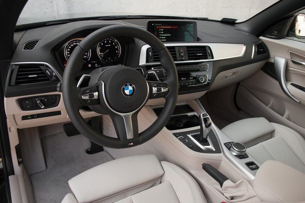 A fülkeforradalom a 2-es utasterében éppúgy elmaradt, mint a magyar szavazófülkékben. Ugyan a BMW szerint ez egy új műszerfal, de szerintem minimális a változás, az is csupán a dekorcsíkokat érinti. Felárért virtuális műszerek kaphatók, amelyek csak a gyújtás ráadásakor kelnek életre – ilyen a tesztautóban is volt, és ugyan nagyon menő, de az Audi hasonló megoldása vagányabb.
