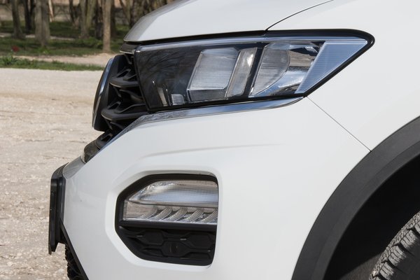 A fényszórókkal egybefutó maszk könnyen lehet, hogy a közeljövő Volkswagenjeinek közös arcát mutatja, oldalanként három-három lámpatesttel tagolták az arcot. A 16-os kerekeket jóval nagyobbnak láttatja a sárvédőíveken futó fekete műanyagozás. Kicsit dob az egészen a külső tükrök tövéből induló, az oldalablakok fölött végigfutó, és a hátsó szélvédő mellett végződő krómszínű betét. Az összkép teljesen rendben van, de vélhetően nem nyer majd díjakat – egy harsányabb fényezés, valami eltérő tetőszínnel sokat dobna rajta.