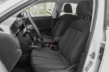 Nyilván nem prémium szintű anyagokat várok, de ennyiért már legalább puha, habosított műanyagból készülhetett volna a műszerfalpárna. Kár, mert amúgy szemre nem rossz, a központi kijelzőt szépen beledolgozták, nem csak úgy odavágták. Mentségükre szóljon, hogy amivel a kezünk a leggyakrabban érintkezik, tehát a kormányt és a váltógombot bőrrel borították. A szövet ülések kényelmesek, fűthetőek, rendelhető színesebb, azokkal már vidámabb környezetben vezethetünk.