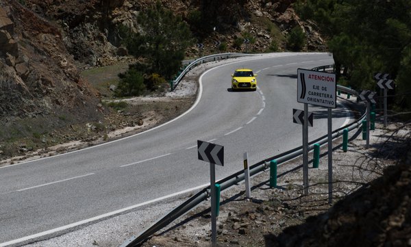 És közben még rendesen rugózik is. Nem tudom, mennyire járhattam közel a tapadáshatárhoz, mert engem a komolyabb tesztelésben kicsit feszélyeznek a mély szakadékok, márpedig az andalúz szerpentineket általában olyasmik szegélyezik. Nagyon kipróbálnám egyszer valami hívogatóbb bukóteres versenypályán, mert érdekelnének a határai. Tényleg durva, amit az autóval futóműből művelni lehet. Talán jobb is, hogy nincs hangja a kipufogónak (természetesen nem).