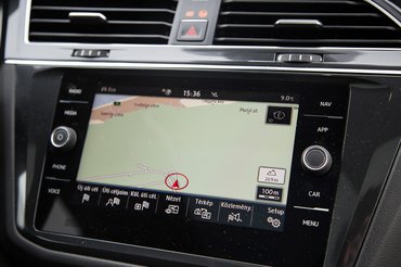 A kormány mögött aztán semmi új, ez itt ugyanaz a kockázat nélküli volkswagenes jóízlés, amivel végigfertőzték az egész konszernt a Porsche alatt. Sőt, konkrétan ugyanaz a belső, mint bármely Tiguanban. Illetve valami azért akad. A tesztautóba a legnagyobb, 20,3 centis TFT-érintőképernyő került, mert a Highline felszereltséghez alapból jár. Ezen csak két fizikai gomb van a kijelzőhöz, szemben mondjuk azzal a tízgombossal, amit két éve a Tiguan nemzetközi bemutatóján kaptunk. Amíg a teljes klímavezerlést meghagyják egy csoportban kijelző alatt, nekem nem fáj, ha messze terpeszkednek a pixelek, és csak érinteni kell. Pláne, ha marad ez a nagy ikonokkal működő holt egyszerű menü.
