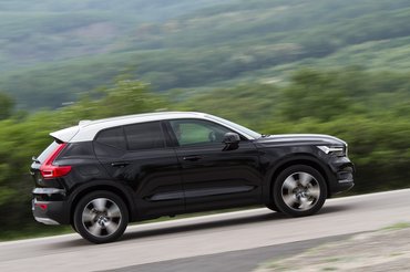 A Volvo bezzeg hozza a hobbiterepjáróságot, hasmagassága és üléspozíciója is olyan, amiért éppen slágertermék egy ilyen autó. Ebben a kategóriában még nem jár légrugó, sem okos stabrudak, az XC40 alatt csak simán tekercsrugók vannak, viszont elég jól hangolva. Az XC40 már-már hajókázik, tényleg csak durva úthibák tudják kizökkenteni, akkor viszont nem csak a remegés jön be, de a beltér is megzörren.