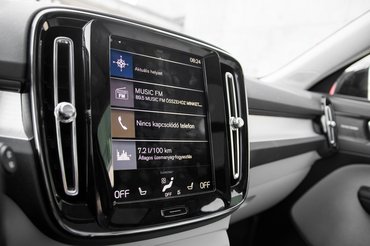 Az ülések Volvo-mércével egyszerűbbek, de még így is messze átlag felettiek, és maradt a szuperkomplikált középső kijelző, aminek a használata vezetés közben karcolja szándékos közúti veszélyeztetést. Külön vicces, hogy a felülnézeti kamera csak rükvercben kapcsol be, amikor a kocsi orrával centizgetek, bízik benne, hogy nem verem oda.