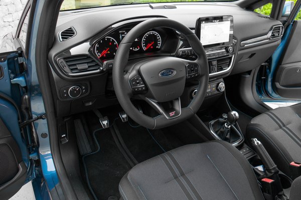 Beülve az a legfeltűnőbb, hogy mennyivel jobb sportülést tud csinálni a Ford egy kis Fiestába, még túl élénk az X2 emléke bennem, és azt kell mondjam, hogy irigykedhetnek a BMW-sek. Mondjuk a Fiesta ülésében úgy lehet elférni, hogy tart is. A kormány lapítása már inkább csak stílusjegy, de a vastagsága tökéletes. A műszerezettségben nincs semmi extra, parasztvakító g-erő mutogatás és hasonlók, az ST ilyen szempontól csak egy puccosabb kivitelű Fiesta, és kész.