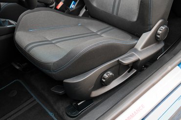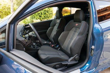 Egy kék ST-re csaptam le a tesztvezetésre, ez lényegében alapkivitelű autó manuális klímával, de Performance csomaggal, azaz benne volt az emlegetett feláras Quaife mechanikus diffizár, rajtautomatika és felkapcsolásra való figyelmeztetés.