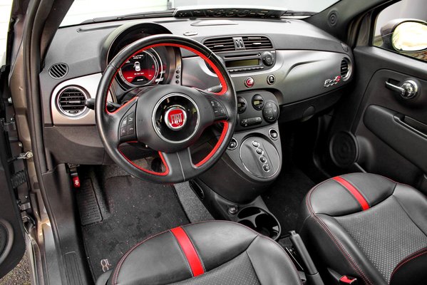 Amúgy a kiskocsi sportos és vagány megjelenésű, az amcsi szélességjelzőkkel, könnyűfém kerekekkel, spoilerekkel, küszöbidomokkal. Az utastérben ugyanez a helyzet, a sötétszürke-fekete bőrüléseket és a kormánybőrözést is piros bőrcsíkok bevarrásával tették vagányabbá. Így beülve a kitakarított autóba akár újnak is hihetném, egyben van, nincs szétkarcolva, vagy letörve semmi. Kívülről viszont már viselt néhány harci sérülést a parkolói adok-kapok kategóriából.