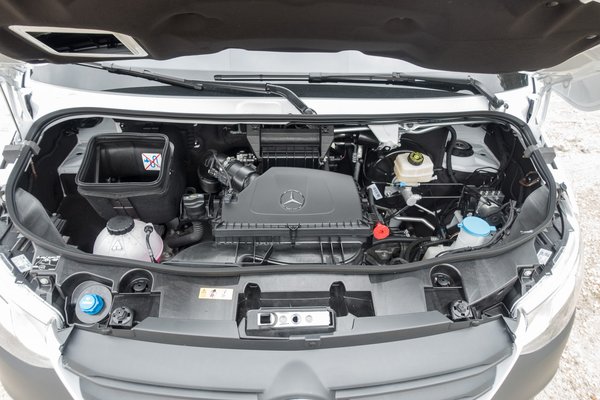 A fronthajtásos dobozos modell saját tömege 50 kg-mal kevesebb, mint az azonos méretű hátsókerekesnek, így a hasznos tömeg 1,5 tonna lehet. Ráadásul 8 centivel alacsonyabb a rakodási magassága is, ami dobozos verziónál konkrétan 56 centi. A legnagyobb Sprinter 5,5 tonna össztömegű, 17 köbméter bármi fér be a raktérbe, egészen 3,5 tonna tömegig.